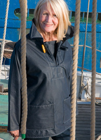 Waxed cotton is a great fabric that lends itself perfectly to these classic sailing smocks. They are practical with a very cool edge! Made to order only.